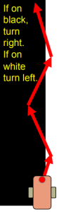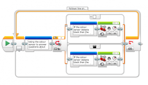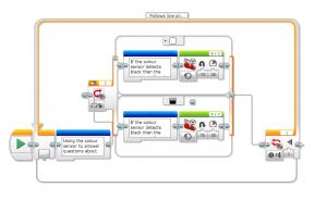 The children are starting to become really familiar with the robot and how the EV3 language works so I felt it was a great time to start working towards our ultimate goal – the New Zealand RoboCup Junior rescue competition. The first part of the rescue challenge is to autonomously follow a black line. The video, below, shows what they achieved today. You’ll notice that the robot wobbles quite a bit! This is normal for a basic algorithm but it can be dramatically improved with maths and much more complexity… perhaps something to come back and look at once the complete rescue challenge is achieved!