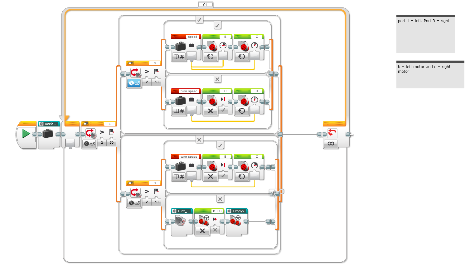 I decided to put a stop program block in the hint section but sadly, it doesn’t let you. This time I thought of making a my block because you could make one with a stop program in it and make the robot stop. (I called the block stoppy). I tried that but it also didn’t work! I thought if that didn’t work I could stop the motors and then stop the program. It didn’t work, again.